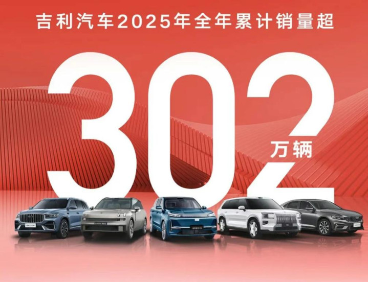 其中,吉利汽车全年交付302.5万辆,超额完成年中上调后的300万辆目标,同比增长39%。旗下品牌均实现突破,吉利银河全年销量124万辆,超额完成“百万银河”销量目标;领克全年突破35万辆,创历史新高;极氪12月单月突破3万辆,创历史新高。